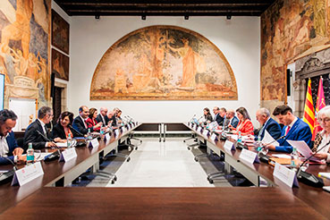 El conseller de la Presidència, Albert Dalmau, i la sindica d’Aran, Maria Vergés, han presidit la primera comissió bilateral Generalitat – Conselh Generau d’Aran al Palau de la Generalitat. Una trobada que ha servit per assolir acords en matèria de drets socials, habitatge, esports i cultura, i per avançar en el nou model de finançament per a l’Aran.