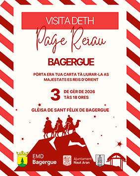 Des de l’organització es convida tots els infants del poble, de la Val d’Aran i visitants que passen uns dies entre nosaltres a portar la seva carta preparada per lliurar-la personalment al Patge Reial, que la farà arribar a Ses Majestats perquè cap desig quedi sense resposta la nit de Reis.