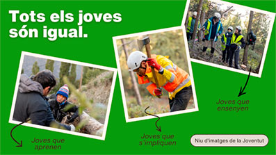 Un banc gratuït de fotografies reals, amb joves en entorns naturals i en activitats significatives, allunyades dels tòpics. I nosaltres hem aportat el que millor sabem fer: context, paisatge i una experiència de voluntariat que transforma.