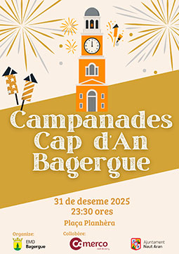 L’acte està organitzat per l’EMD de Bagergue, amb la col·laboració de Comerco Cash & Carry i de l’Ajuntament de Naut Aran, i es convida tota la ciutadania i les persones que visiten la Val d’Aran durant aquestes dates a participar i compartir l’arribada del nou any a Bagergue. Bagergue acomiadarà així el 2025 i donarà la benvinguda al 2026 amb una celebració que s’ha convertit en un esdeveniment únic i autèntic a la Val d’Aran, fidel a les seves tradicions i al so de les campanes del seu campanar.